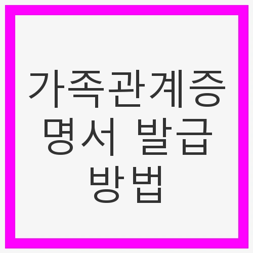 가족관계증명서를 발급받는 방법은 크게 두 가지로 나눌 수 있습니다. 하나는 주민센터를 방문하는 전통적인 방법이고, 다른 하나는 인터넷을 이용한 방법입니다. 주민센터를 방문할 경우, 신분증과 수수료를 지참해야 하며, 발급받는 데 1,000원이 발생합니다. 하지만 인터넷을 통해서는 무료로 발급받을 수 있는 장점이 있습니다.