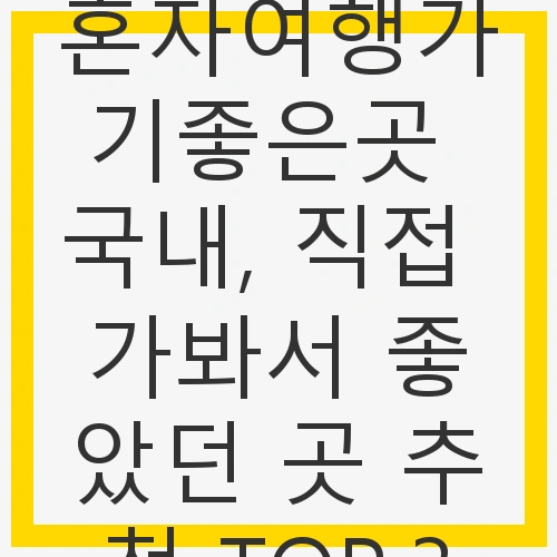 혼자 여행을 떠나는 것은 자신과의 소중한 만남이자, 새로운 세계를 탐험하는 기회입니다. 여행을 통해 우리는 새로운 경험을 하고, 여유로운 시간을 가지며, 일상의 스트레스를 잠시 잊을 수 있습니다. 하지만 혼자 떠나는 여행지는 신중히 선택해야만 합니다. 혼자여행가기좋은곳 국내, 직접 가봐서 좋았던 곳 추천 TOP.3를 통해 혼자여행의 즐거움을 만끽해보세요.